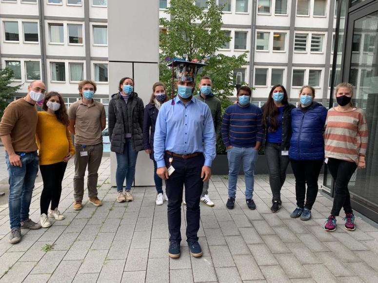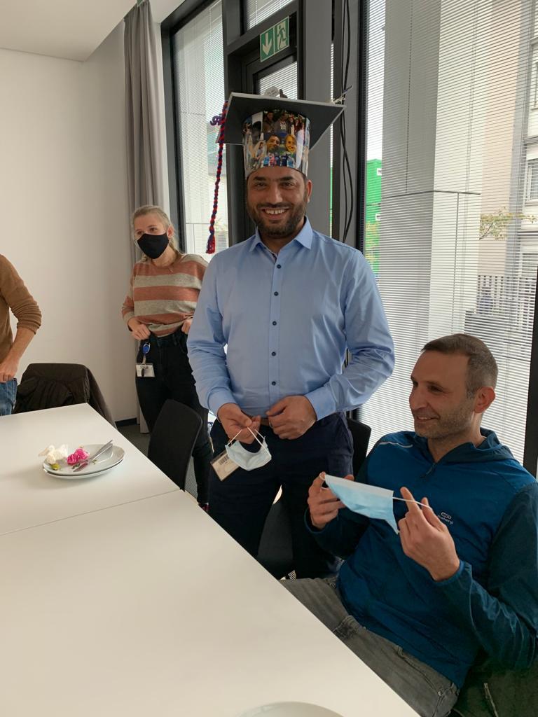 Gulzar discovered important new functions of a mitochondrial protease in adult neural stem cells during his time as a PhD student. His work was supported by the Cologne Graduate School of Ageing Research. Unfortunately personal contact was still limited due to corona regulations but we tried our best to celebrate this great day! Gulzar and his expertise will stay a little longer in the lab 😉 Needless to say: We are very happy about that.